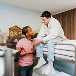 Je ne voulais pas partir, c'était une expérience superbe, je resterais ici encore. Personnel courtois toujours disponible. Une chambre lumineuse et pas chère, avec un décor brillant. Des installations propres et des lits très confortables. Position superbe à Rotterdam.